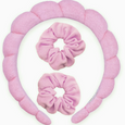 TREND ALERT! This headband is all over social media, and we've turned it into a set by adding matching terry cloth scrunchies that can be used to prevent water from running down your arms!
